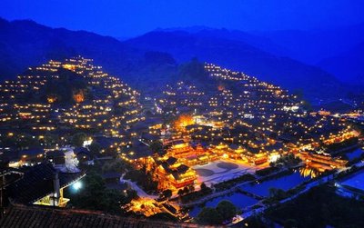 2、一定要到观景台俯瞰西江全景,下行欣赏白天的西江全景,上行欣赏夜晚下的满山星光;