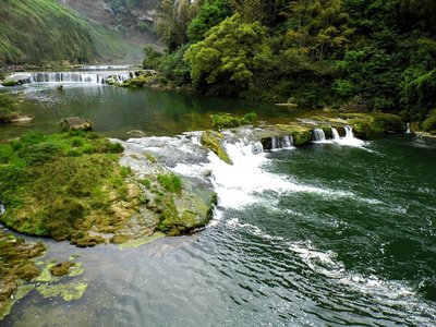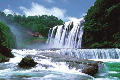 然后游览《西游记》拍摄地【陡坡塘瀑布】(游览约半小时)它位于黄果树瀑布上游1公里处,它是黄果树瀑布群中瀑顶最宽的瀑布。陡坡塘瀑布有一个特设的现象,每当洪水到来之前,瀑布都会发出轰隆的吼声,因此又叫吼瀑。